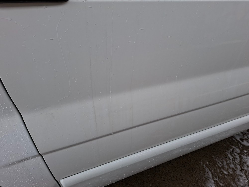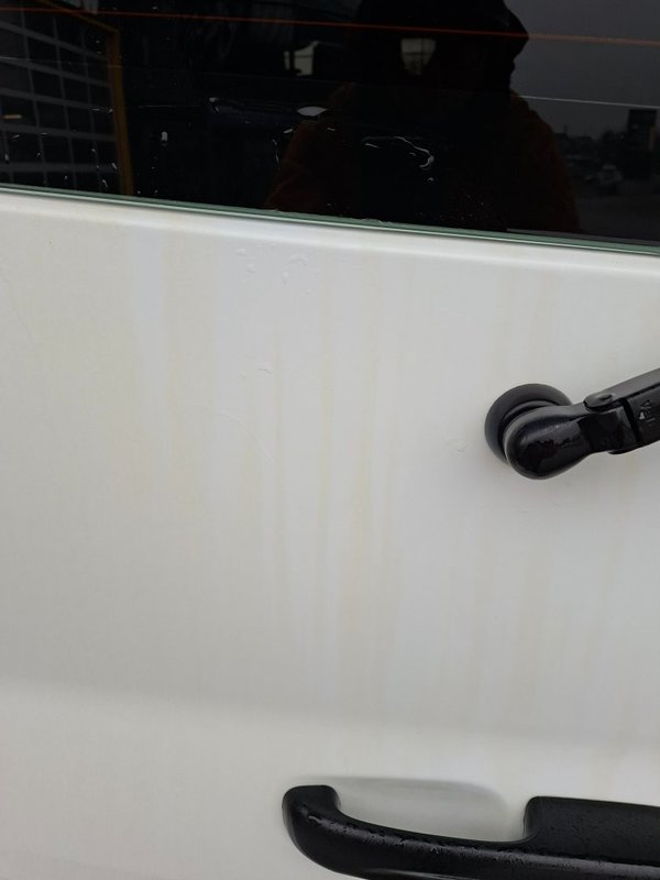 Brązowe ziemiste zacieki na białym lakierze